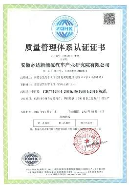ISO19001质量管理体系证书